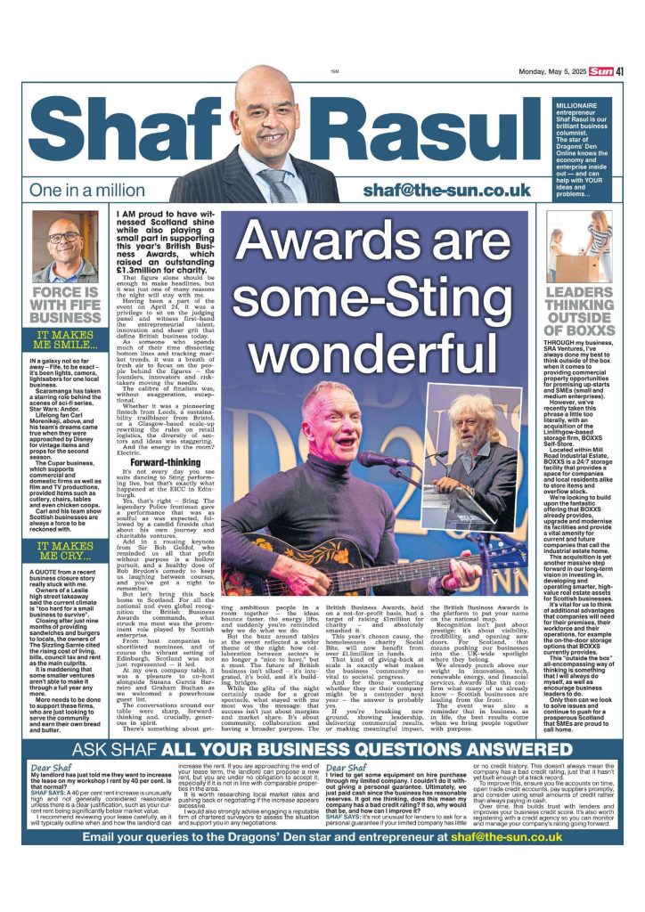 I am proud to have witnessed Scotland shine while also playing a small part in supporting this year’s British Business Awards, which raised an outstanding £1.2 million for charity.